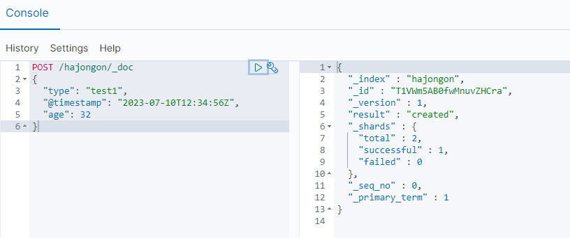 jsonPOST /hajongon/_doc { "type": "test1", "@timestamp": "2023-07-10T12:34:56Z", "age": 32 }