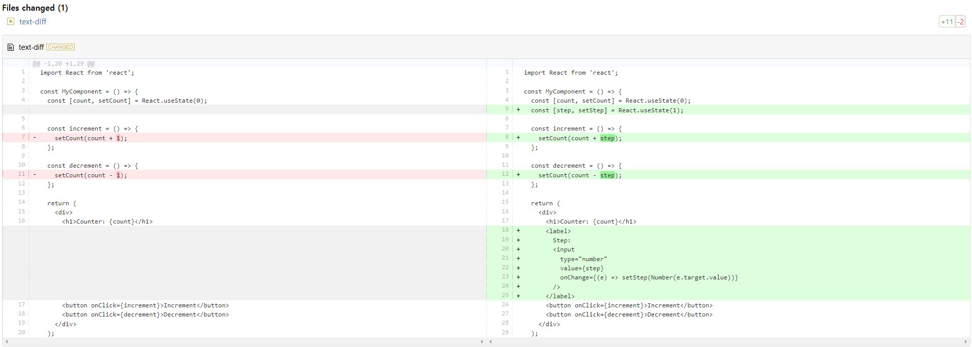 diff2html의 데모 예제는 GitHub의 pull request 링크를 사용하는 경우가 많아, 순수 텍스트 두 개를 비교하는 예제를 찾기 어려웠습니다. 이는 순수 텍스트 비교를 필요로 하는 저와 같은 사용자에게는 불편함을 초래했습니다.